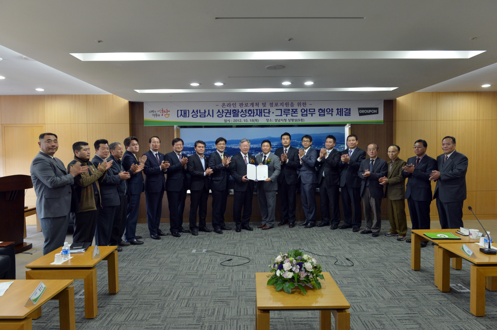 재단법인 성남시 상권활성화재단과 그루폰과의 업무협약식 기념사진