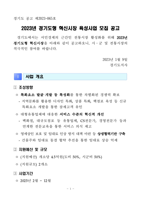 (2023-065)2023년 경기도형 혁신시장 육성사업 공고문 (1).hwp [미리보기]