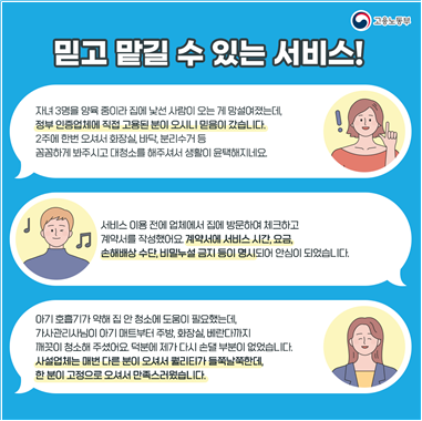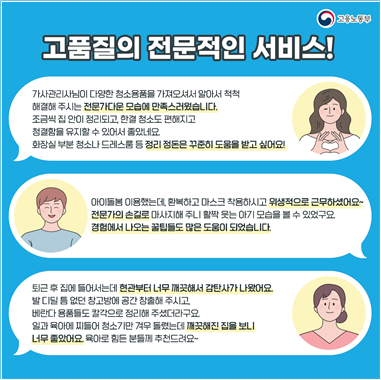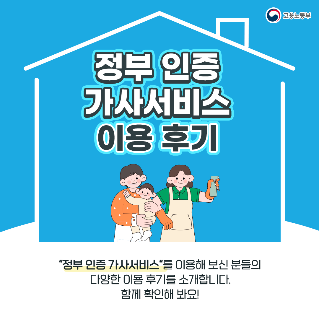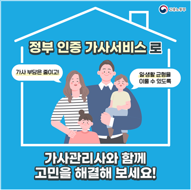 고용노동부에서는 정부인증 기관의 신뢰할 수 있는 가사서비스를 이용할 수 있도록