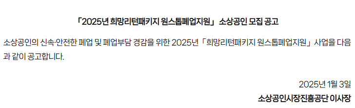 「2025년 희망리턴패키지 원스톱폐업지원」 소상공인 모집공고.hwp [미리보기]