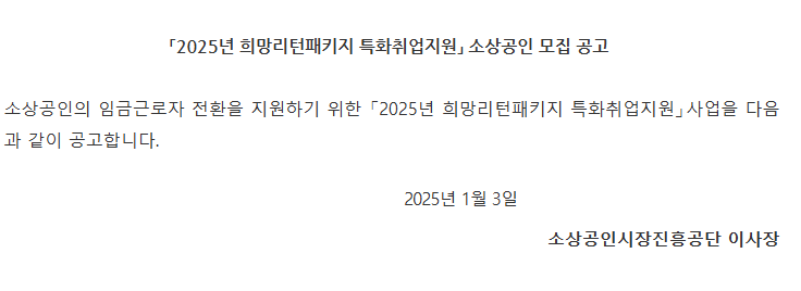 「2025년 희망리턴패키지 특화취업지원」 소상공인 모집공고.hwp [미리보기]