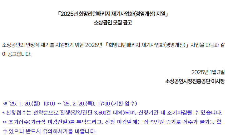 「2025년 희망리턴패키지 재기사업화(경영개선) 지원」 소상공인 모집공고.hwp [미리보기]