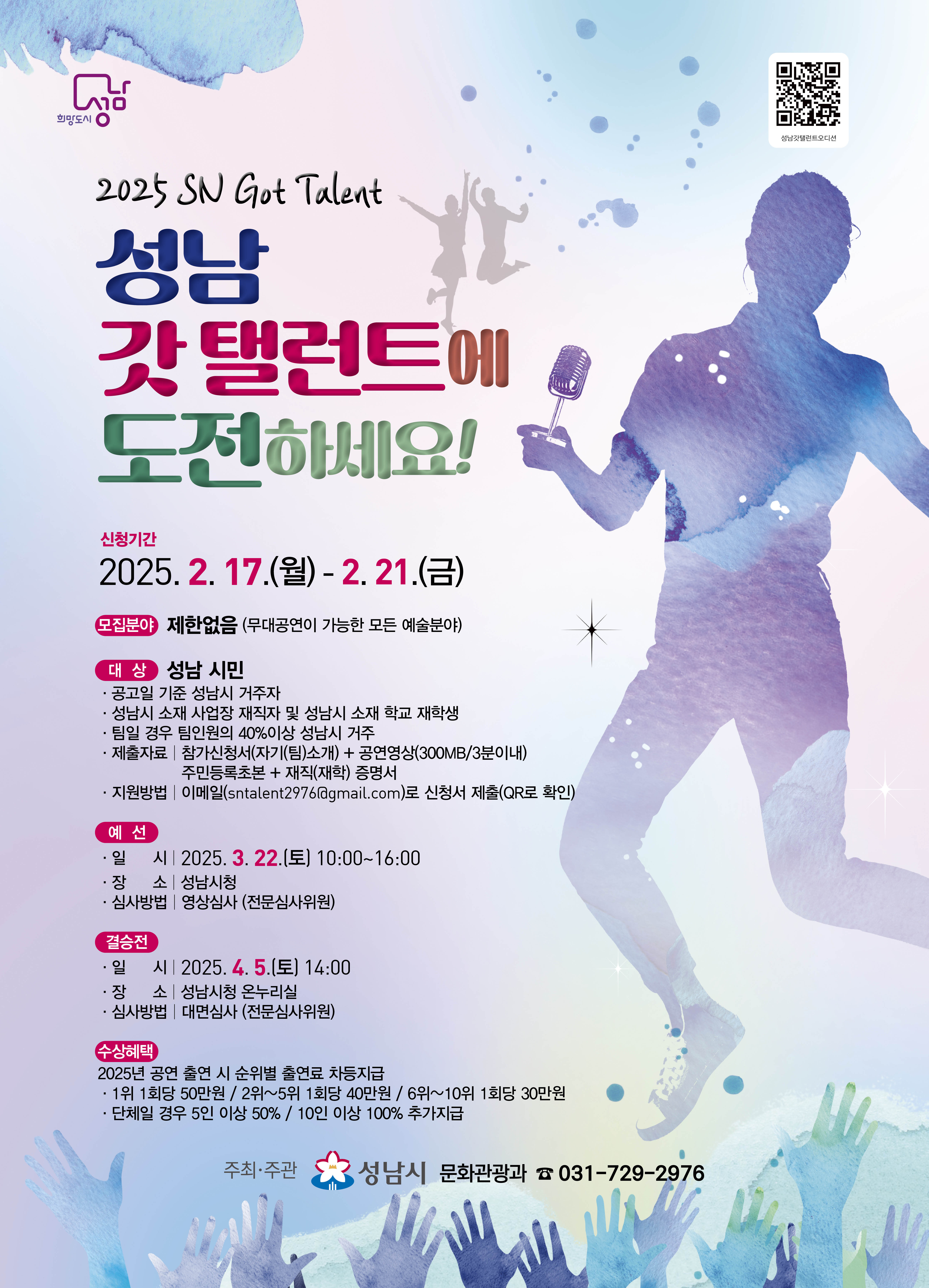 이에 「2025년 성남 갓 탤런트」 오디션에 지원할 지역 예술가 여러분을 모집합니다.