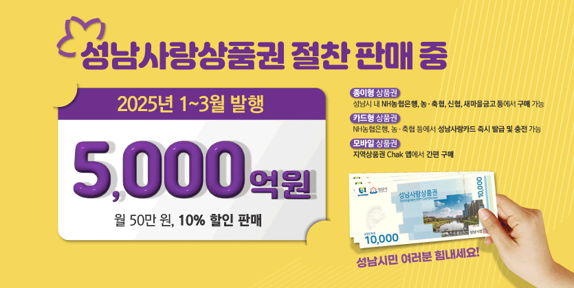 [성남시청] 성남사랑상품권 3월 10% 할인 판매 안내