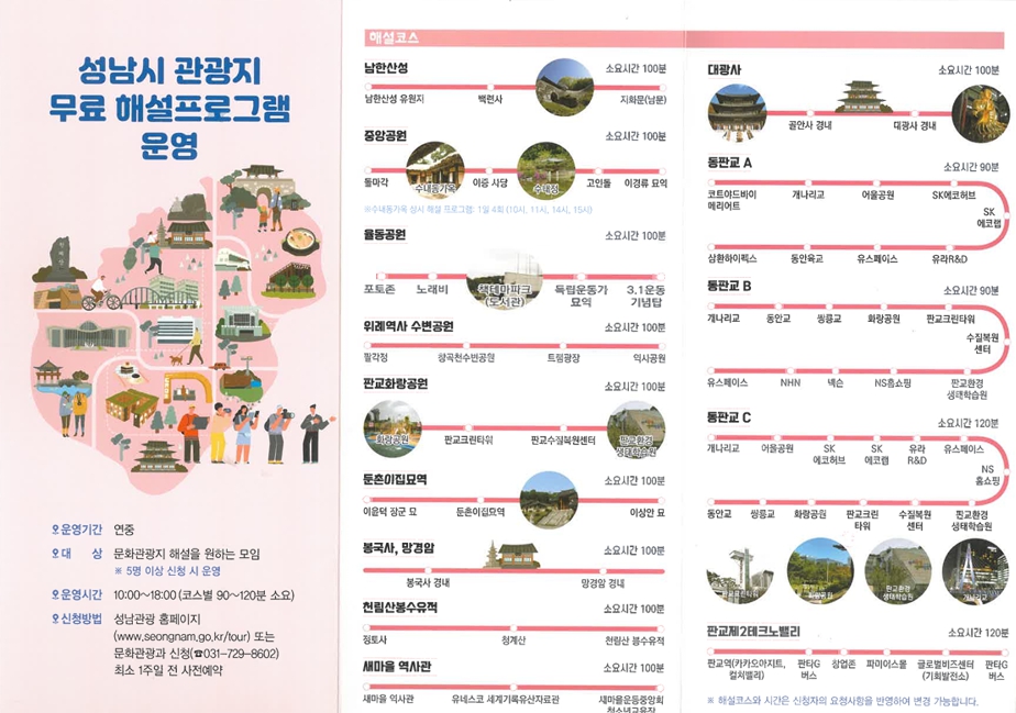 [성남시청] 성남시 관광지 무료 해설프로그램 이용 안내