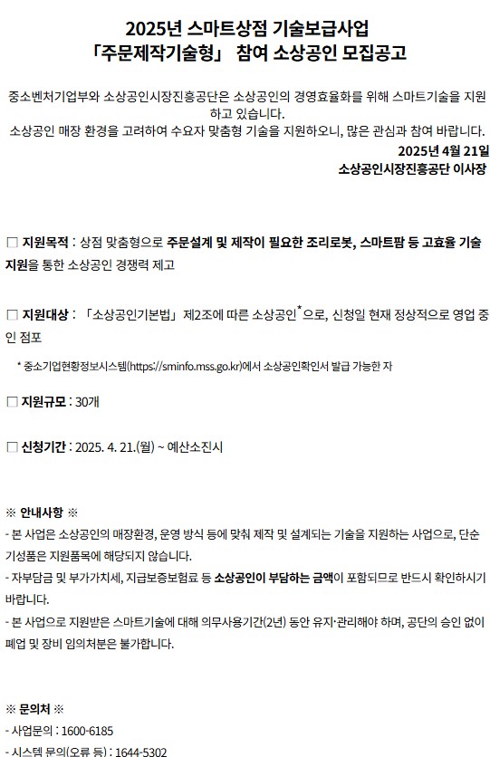 2025년+스마트상점+기술보급사업+주문제작기술형+참여+소상공인+모집공고.hwp [미리보기]