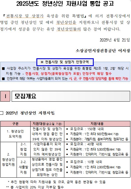 2025년+청년상인+지원사업+통합+공고문.hwp [미리보기]