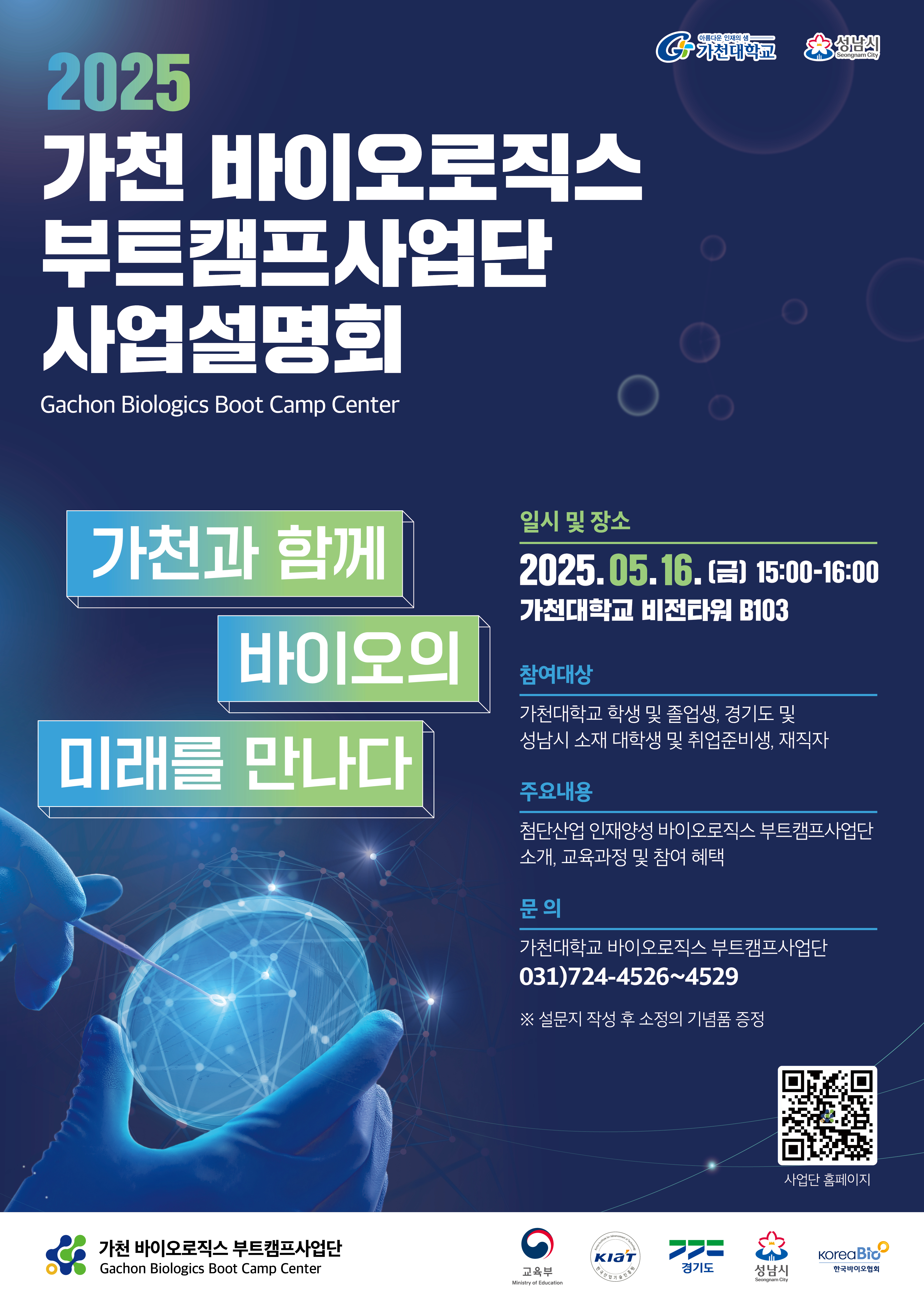 [성남시] 「2025 가천 바이오로직스 부트캠프사업단 사업설명회」 개최 안내