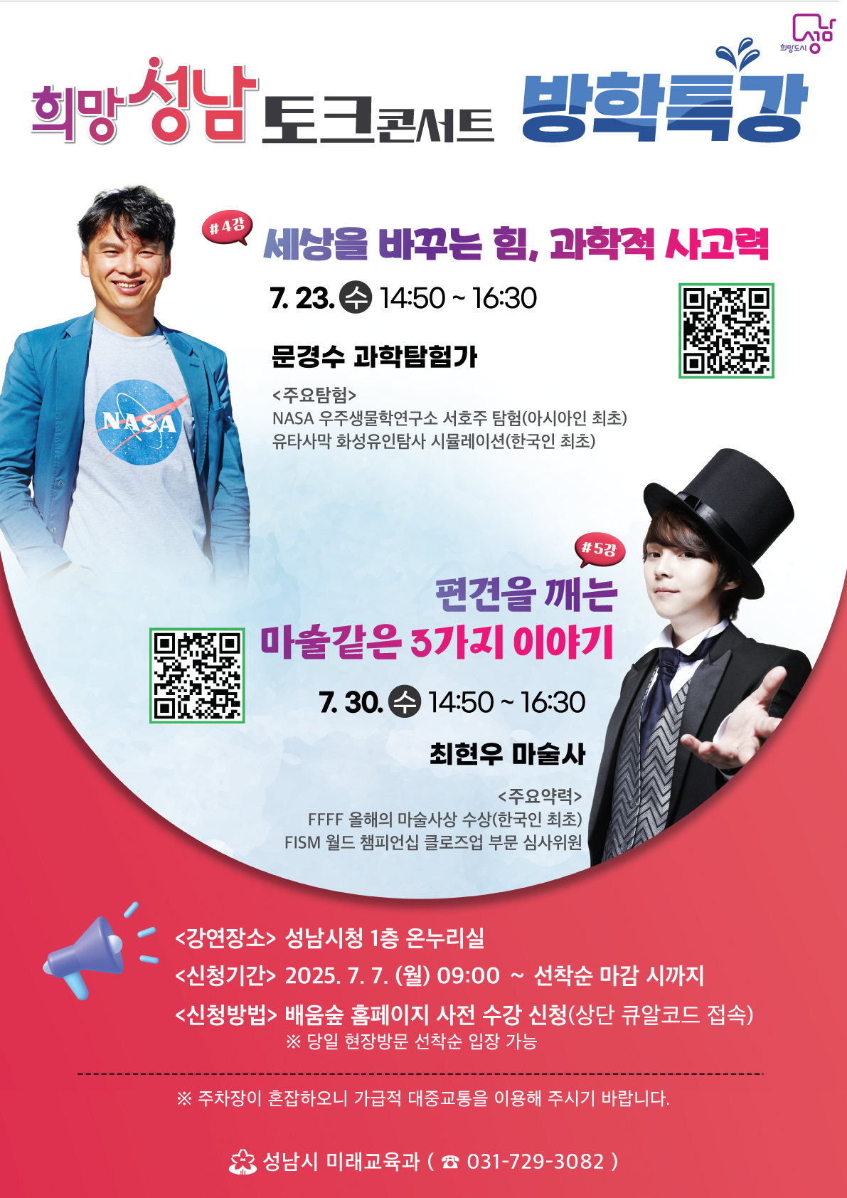 [성남시] 희망성남 토크콘서트 방학특강 개최 안내