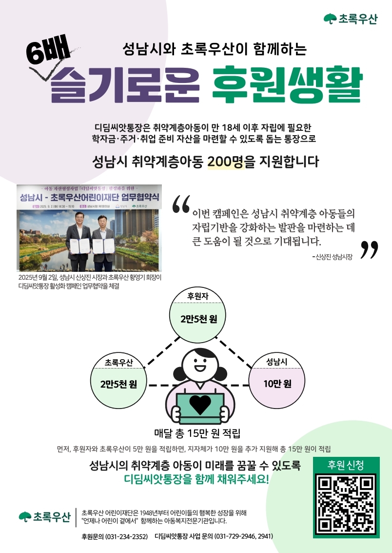[성남시] 성남시 아동 자산형성 지원사업 『디딤씨앗통장』안내