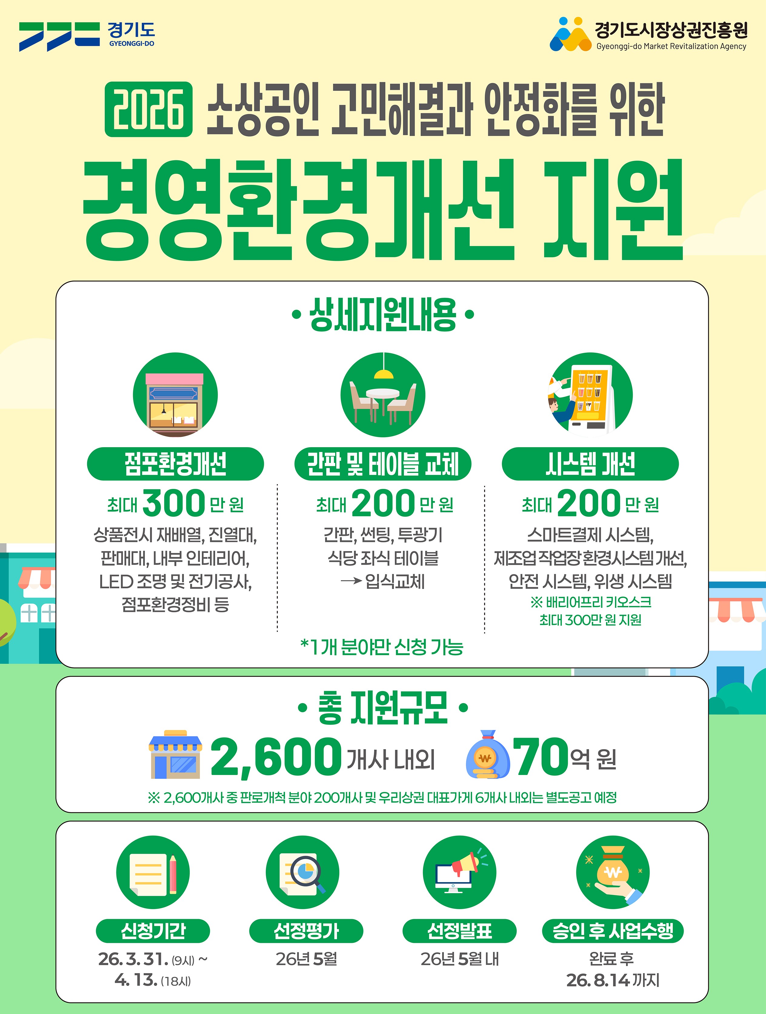 2026년 경기도 소상공인 경영환경개선사업 모집 공고