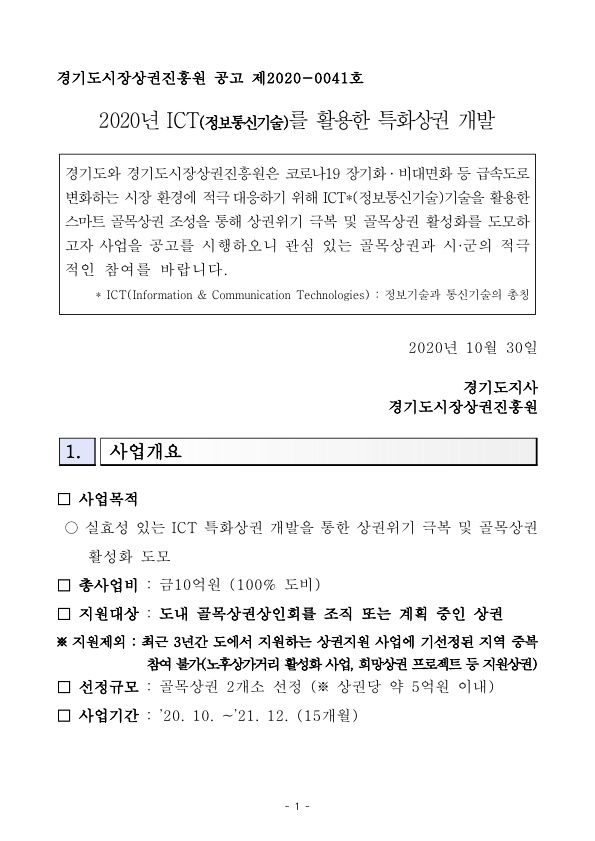 붙임. 2020년 ICT 특화상권 개발 사업 시행 공고문.hwp [미리보기]